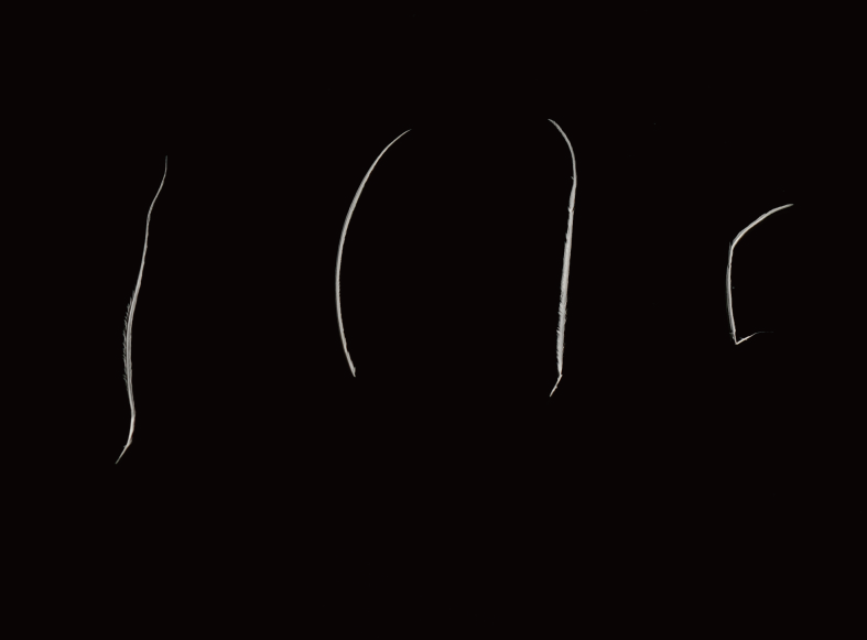 ● A single feather barb detached from the vane.