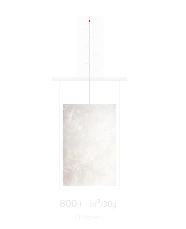“Fill Power” is a critical indicator which reflects the insulation ability of feather & down products, which is also a measurement of the space occupied by a designated material. The higher fill power means it keeps more air volume, namely the better insulation ability. The international unit of fill power measurement is in³/30g, it says under certain conditions, the exact cubic inch of 30 grams of down occupied. Down content is closely related to fill power.