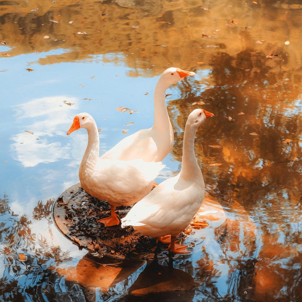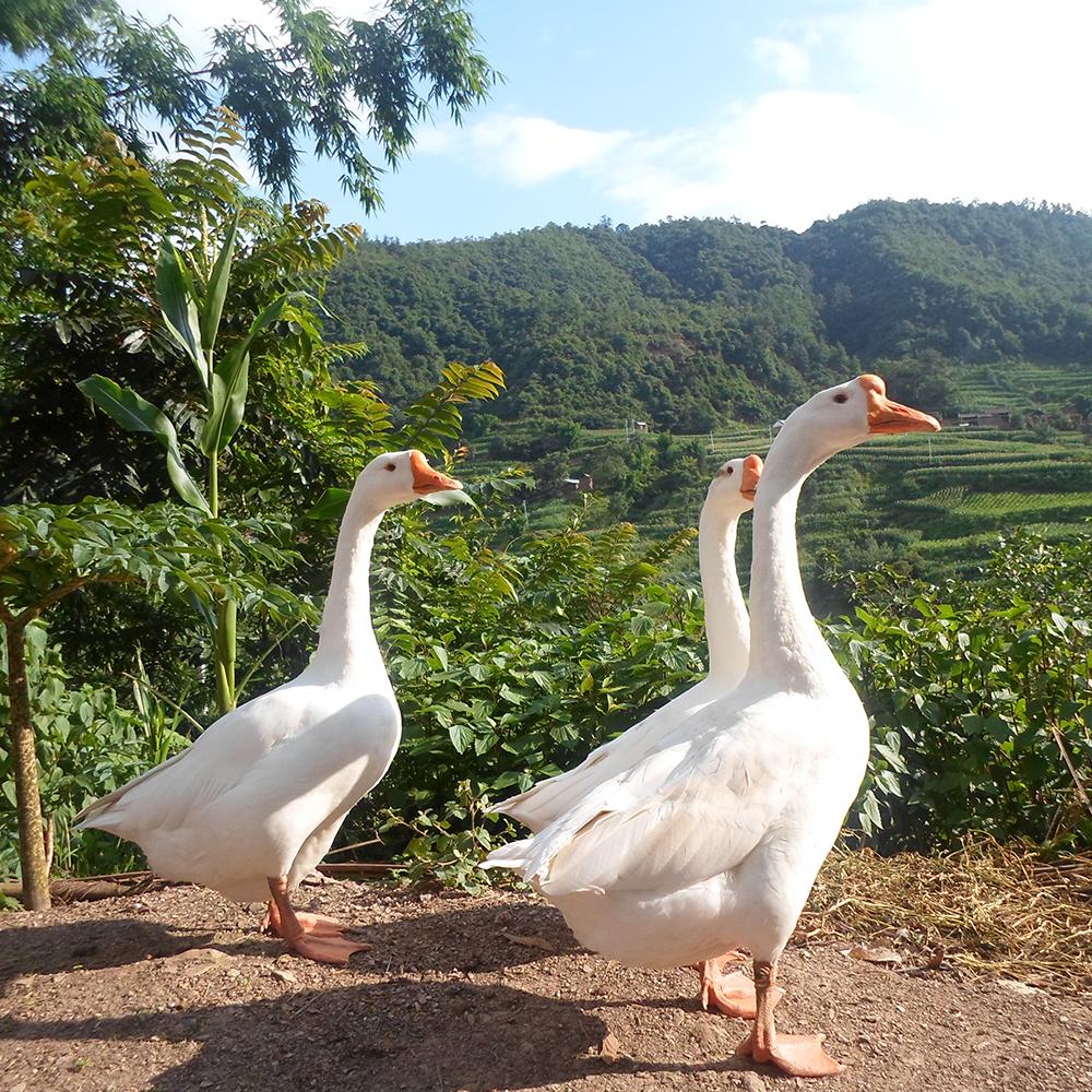 Wanxi White Goose lives in the north boundary of subtropical zone, with a typical monsoon climate and moderate rainfall. It has four distinctive seasons, with adequate sunlight and extended period of frost-free season. Wanxi White Goose has a muscular body, chin-up posture, arched neck, broad chest, and flat back. Snow white down and feathers cover all over its body, on the top of its head there is an orange sarcoid, the shape of its head looks like a lion’s head, it’s also called “Lion-head White Goose.” The Lion-head white goose has high down production ability, pure white plumages, outstanding resilience, high fill power, and mature large down clusters. Each goose can provide about 349g of feathers and 40-50g of down. Down quantity exported from this area weights over 10% of the total quantity of exported Chinese down, which is the top one in China. The skin of lion-head goose can be made into fur coats. The goose skin is soft, light, and warm; it is a quality material for jackets and art wares.