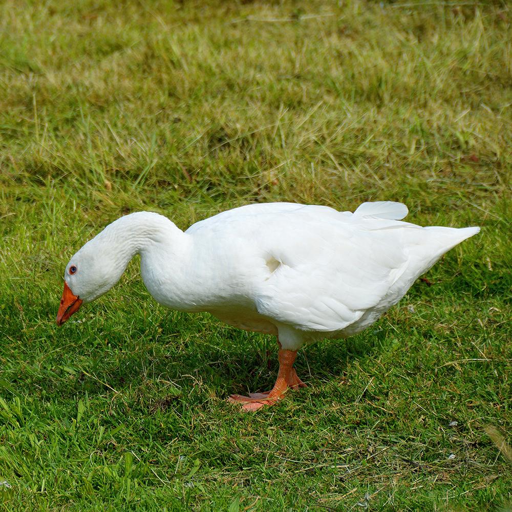 松花江白鹅以其全身羽毛洁白、产绒量多而闻名,松花江白鹅体型较小,略呈长圆形。羽毛洁白,颈细长,肉瘤较小,颌下偶有垂皮,即咽袋。喙、胫、蹼皆为橙黄色,虹彩为蓝灰色。腹部紧致不下垂。因其生长速度快,适应能力强,体型小,产蛋量高,抗寒能力强等优点而受到当地农户们的喜爱,并广泛饲养。为了更好地保护和改进松花江白鹅这一鹅种,黑龙江省畜牧研究所建有籽鹅保种场,黑龙江省农科院建有籽鹅繁育工程中心。