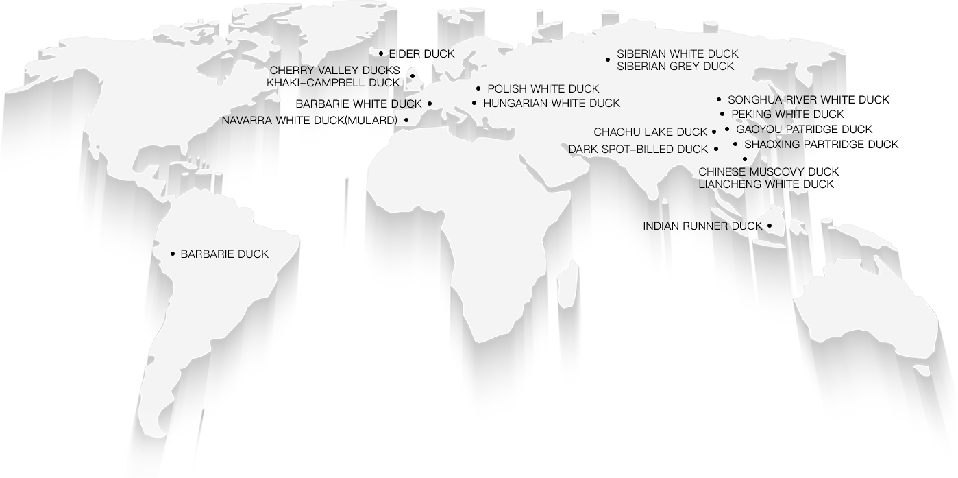 Chinese Muscovy duck is originated from middle and South America. It can live under freezing weather (-12 ℃). It can be easily recognized by its red duckbill. It was introduced to Europe when Columbus found the New Continent in the 16th century. It was finally introduced to Fujian in 1729 by European businessmen. The record in “Quanzhou Prefecture Annual” in 1763 said, “Muscovy duck looks like a duck, but its body size is larger than local goose, it was introduced from abroad.” The Muscovy duck has gradually evolved into Chinese Muscovy Duck through the domestication by local farmers. Chinese Muscovy duck has stable genetic performance, and better adaption ability to the local environment compares to the original Muscovy duck. The primary production areas locate in Fujian, Taiwan, Hainan, Guangdong, and Guizhou Province. Other small farms locate in Guangxi, Zhejiang, Jiangxi, and Hubei Province.